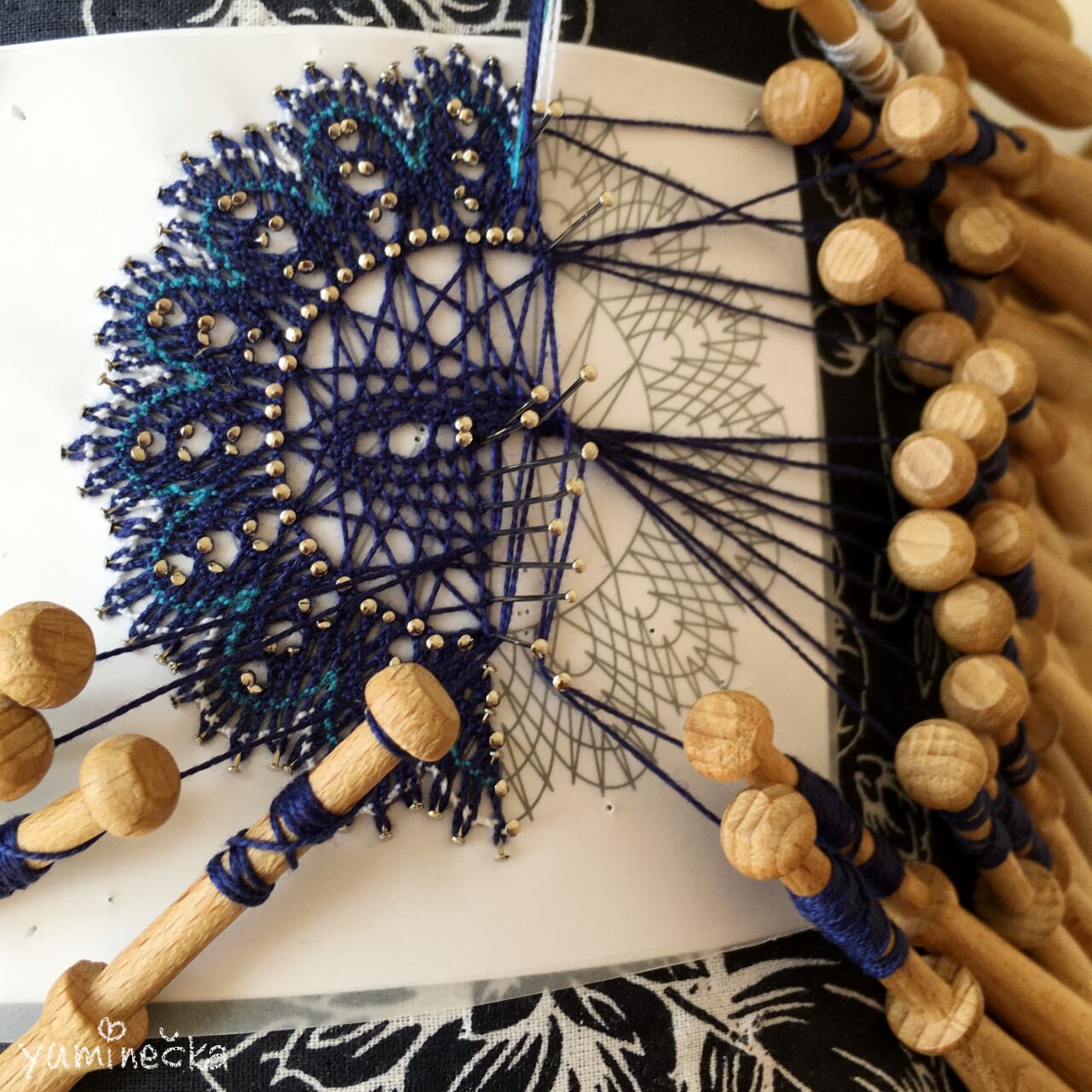 チェコの先生に師事し、国の芸術工芸教育認定をいただいき、長くクラスをしている作者。絵に描いて型紙にして、糸を選び、心を込めて編みました。手にとって頂くだけで、その温かさと手仕事の美しさを感じて頂けることでしょう。