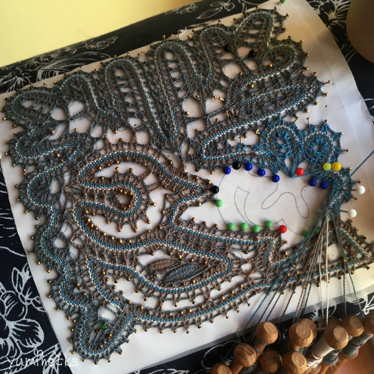 チェコの先生に師事し、国の芸術工芸教育認定をいただいき、長くクラスをしている作者。絵に描いて型紙にして、糸を選び、時間をかけて心を込めて編みました。手にとって頂くだけで、その温かさと手仕事の美しさを感じて頂けることでしょう。