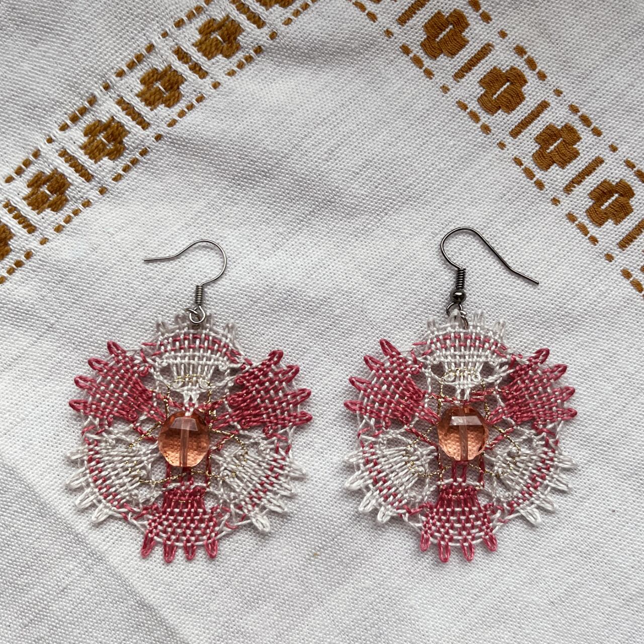 世界に一つしかない【パリチコレース編み】プリムラのピアス、ピンクです。手作りの優しやと心を感じる、チェコの【パリチコレース編み】。存在感のあるデザインと美しい色合いが、装いに華やかさと上品さをプラスします。耳元で揺れる優雅なピアスは、特別な日のアクセントとしてだけでなく、普段使いでもおしゃれを楽しむのに最適です。